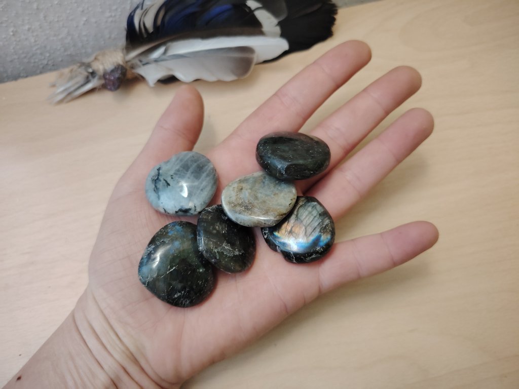 Přírodní labradorit s leštěnou plochou o velikosti cca 2–3 cm. Každý kus je originál, náhodně vybíraný, může se lišit tvarem a odstínem i intenzitou barevných odlesků. Tradičně spojován s ochranou, intuicí a vnitřní silou. Vhodný k nošení u sebe jako talisman, na tělo, na oltář, k rituálům se záměrem ochrany a vnitřního vedení i jako harmonizující prvek do prostoru.