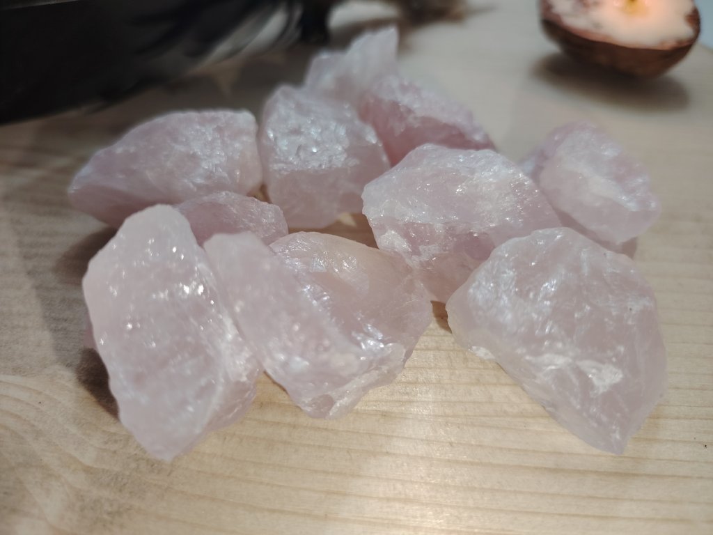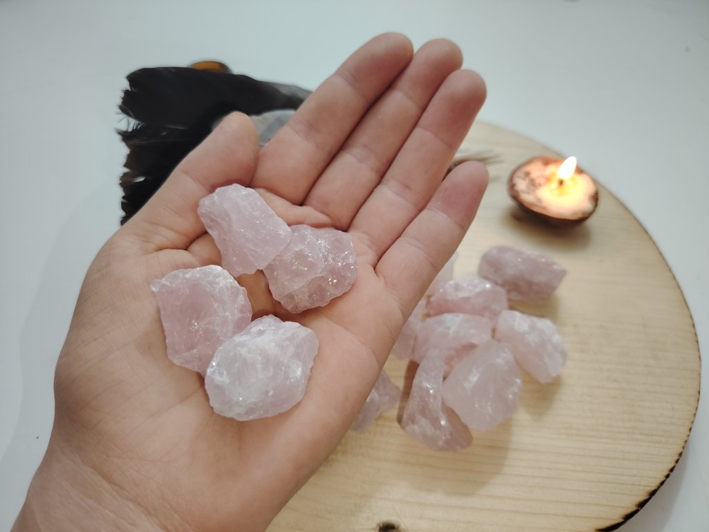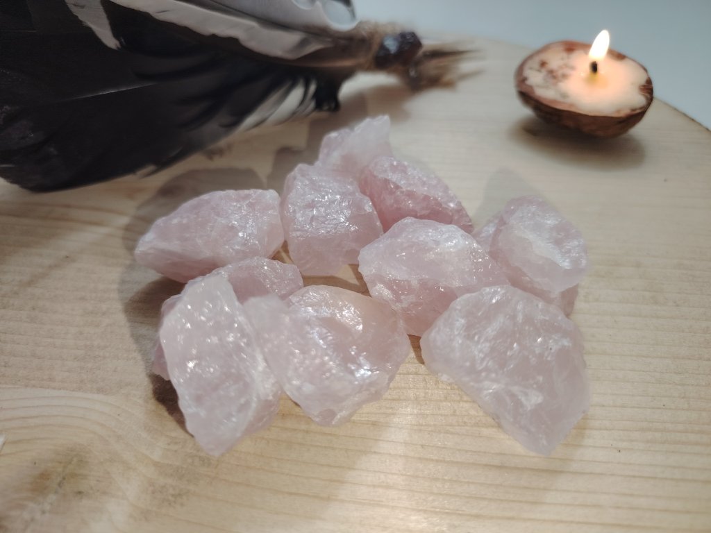 Surový růženín o velikosti cca 2–3 cm. Každý kus je originál, náhodně vybíraný, může se lišit tvarem a odstínem. Tradičně spojován s láskou, sebeláskou a jemností. Vhodný k nošení u sebe jako talisman, na tělo, na oltář, k rituálům se záměrem lásky a sebelásky i jako harmonizující prvek do prostoru.